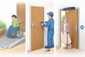 軽い力で開くドアへの変更やレバーハンドルへの交換、引き戸への改修、既存の開き戸を自動化する方法など、改善策は複数あります。