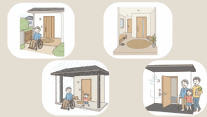 玄関は家族全員が毎日使う場所です。車椅子利用者だけでなく、子どもや高齢者にとっても使いやすい設計にすることが重要です。